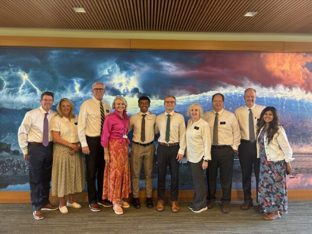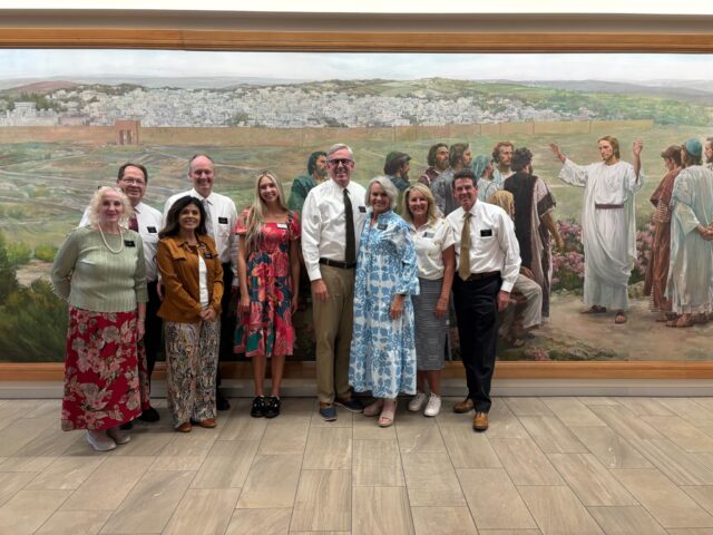 The MTC is like nothing we’ve ever experienced. We’ve been immersed in studying Preach My Gospel which teaches us how to share our beautiful gospel of Jesus Christ with everyone we meet. We spent all our study hours (8-11:30am and 1-4pm) with our district, an amazing group who will serve in Tokyo North and South missions and San Diego missions. We came to love them and our instructors for their spiritual strength, their commitment to the gospel and their willingness to serve so faithfully. The murals in the newer buildings on the MTC campus are breathtaking. Our district posed in front of both with our morning and afternoon instructors.