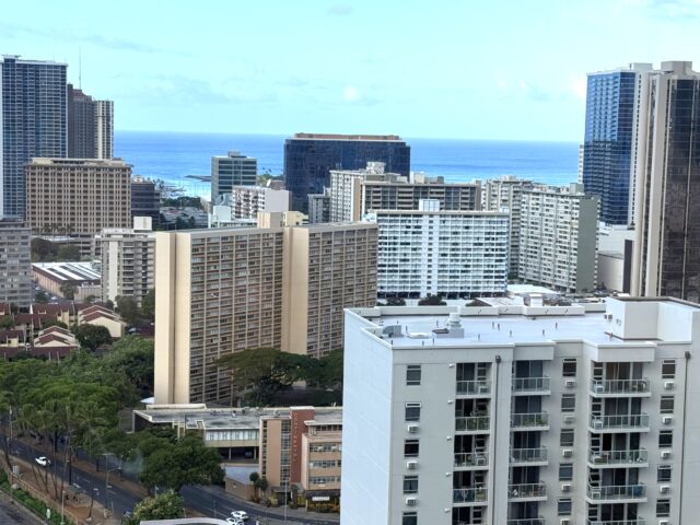 We moved into our apartment, a unit on the 29th floor of the Banyan Tree Plaza, a downtown 36-story apartment building that sits just east of the Honolulu Tabernacle, a beautiful landmark building that was built in 1941, just before the Pearl Harbor attack. It has served the saints here in Honolulu for over 80 years. The mission offices are situated right next to the tabernacle to the west. We’re working to make our apartment our home away from home for the next 18 months. The views are spectacular! We’re about a mile from Waikiki beach, but I doubt we’ll spend much time there because there are far less crowded places to see and enjoy.