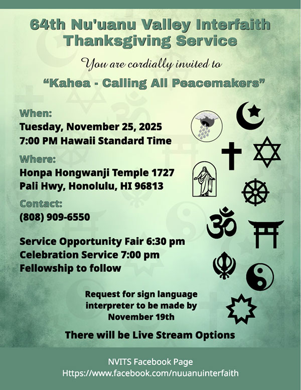 Michael and I attended an Interfaith Thanksgiving Service a couple of weeks ago, held at a Buddhist temple called Honpa Hongwanji Hawaii Betsuin. It was so beautiful inside and the 13 religious faiths represented were diverse yet unified in values of love, respect, kindness, gratitude and care for each other. Our Auwaiolimu ward bishop spoke, representing well our faith tradition with a reading from 2 Nephi 25:26 “And we talk of Christ, we rejoice in Christ, we preach of Christ, we prophesy of Christ, and we write according to our prophecies, that our children may know to what source they may look for a remission of their sins.” He spoke of Christ’s atonement and the joy that comes from knowing that Christ knows and loves each one of us. The evening felt very “millennial” as so many differing faith beliefs gathered together under one roof with so much love and commonality. We loved it.