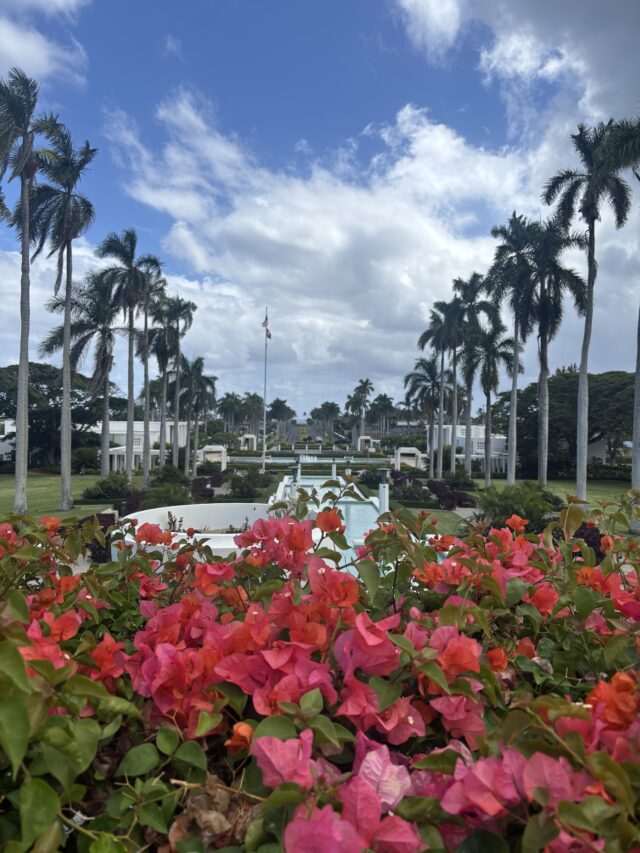 On our P-day last week we explored the Hoʻomaluhia Botanical Gardens in Kaneohe, a beautiful 400 acre preserve with paths, lakes and campsites.  It was very peaceful; a much needed break after a heavy week of missionary transfers and car challenges.  Yesterday’s P-day we drove up to Laie and attended the temple.  We found much peace and spiritual uplift within those walls, and of course the grounds are immaculately maintained.  Then we took some time to see a pretty beach located just a few hundred yards from the temple, appropriately named Temple Beach.