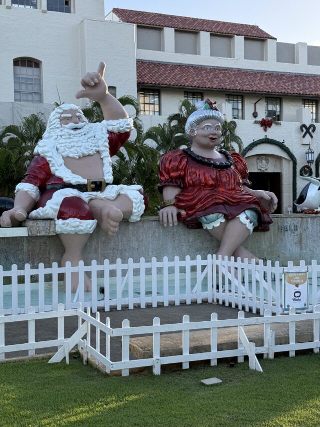 It doesn’t really feel like the holidays here with temperatures consistently in the 70’s and 80’s but Hawaiians still love and honor the holidays.  On one of Michael’s recent walks he came across these home decorations–the bigger, the better.  We are both singing in the dual stake Christmas concert on December 14th at the Tabernacle so we’ve been thinking a great deal about Christmas and the birth of our Savior for the past two months since we started practices.  We love our Savior and continue to express our love for all He has done for us.  I heard a woman in our ward say “Christ wears the scars so that we won’t have to” which fills me with so much gratitude for Him.
