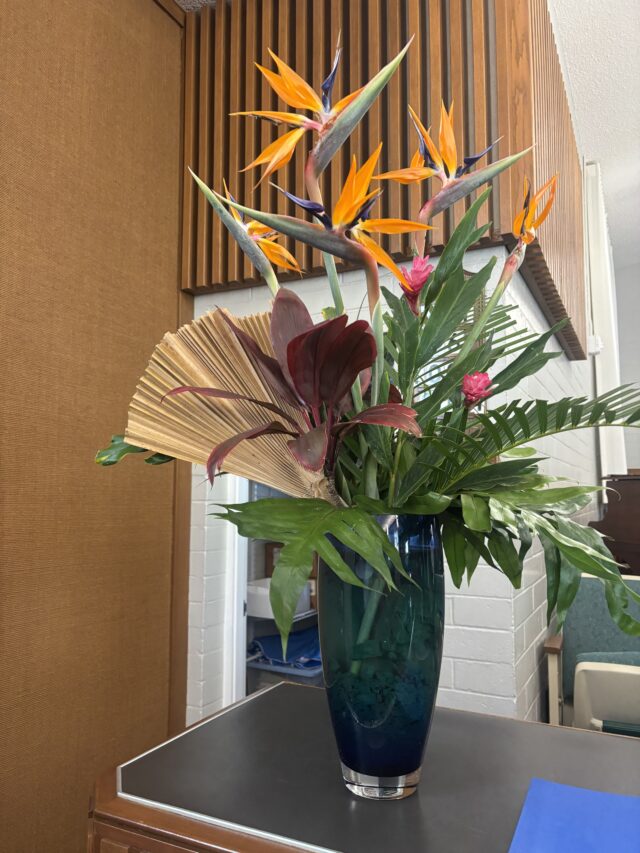 The weekly bouquet provided by Auntie Helen for our church meetings. She also makes the bread for the sacred sacrament we partake each week. She is ALOHA!
