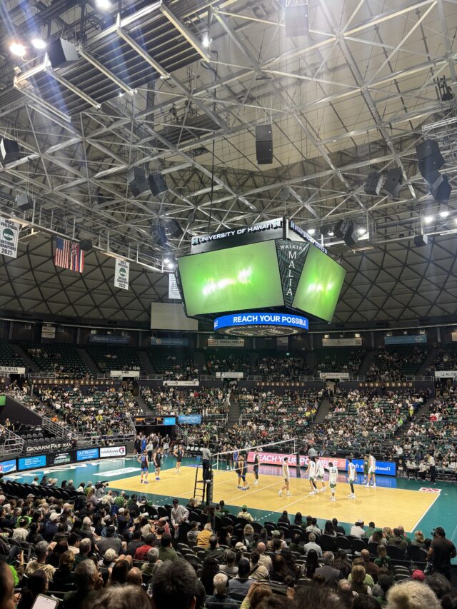 The office staff get together on occasions for holidays, dinners and events. Last Friday we all attended the Univ of Hawaii vs BYU volleyball game. UH is ranked #3 and BYU is ranked #6. It was super exciting even though the Cougars didn’t win. Oahu loves their volleyball–no wonder UH claims the highest attendance in the NCAA.
