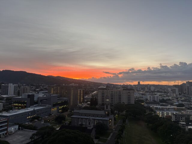 Morning sunrise, taken from the lanai of our 20th floor apartment.