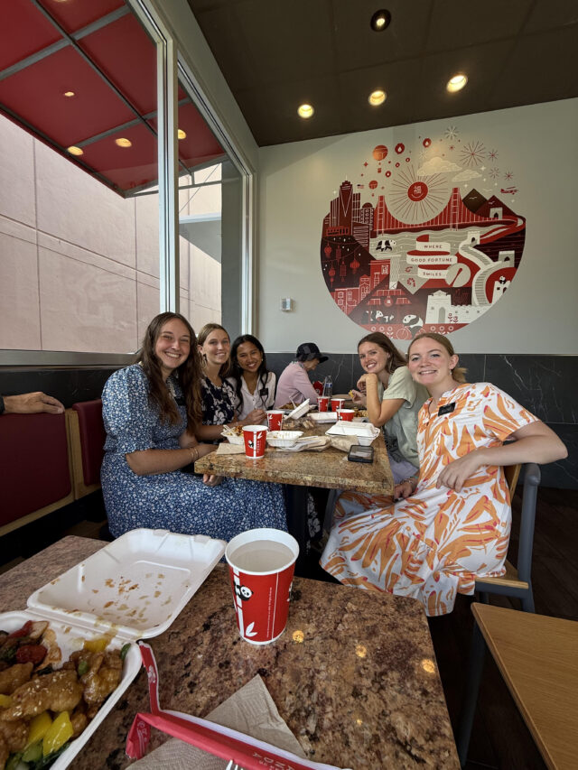 It’s been five weeks since we’ve posted; shame on us. We’ve been super busy in the mission office preparing for arriving missionaries (Feb 3rd), transfers (Feb 4th) and departing missionaries (Feb 5th). We feed them and hear about what motivated them to serve for the arriving missionaries and miracle moments of growth for the departing missionaries. This is a pic of five of the seven departing sisters who we treated to Panda the day before they left (adorable–each one).
